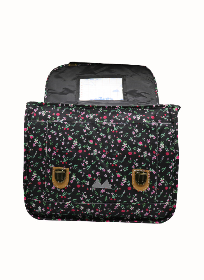 Il est doté d’un fermoir qui est facile d’ouverture ainsi qu’une poche qui vous permettra d’y déposer votre collation. Il y a aussi une seconde poche à l’intérieur qui est plus discrète, vous pourrez y déposer vos affaires les plus intimes et secrètes. On peut par ailleurs retrouver sur ce produit deux soufflets avec une séparation au milieu. De même, l’emploi du temps sur le rabat pour l’organisation de l’élève est très pratique. Le fond du cartable est renforcé avec du simili cuir qui le protégera de l’usure et qui lui apporte de la tenue, grâce à cela, votre cartable ne tombera plus lorsque vous le poserez à terre, il restera droit. Ceci est d’autant plus pratique lorsque vous désirez le prendre en main.