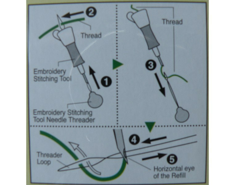 Passez l'enfile-aiguille à travers l’œil central de la recharge, ensuite enfiler le fil à travers la bouche.