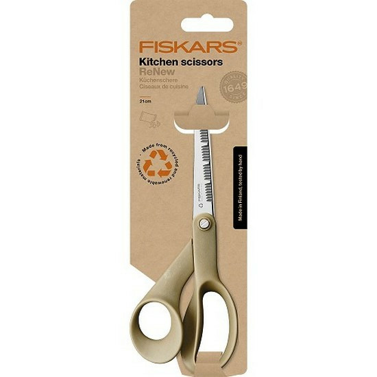 Les ciseaux de cuisine FISKARS® ReNew sont éco-responsables , un choix judicieux pour couper les emballages, les herbes...
