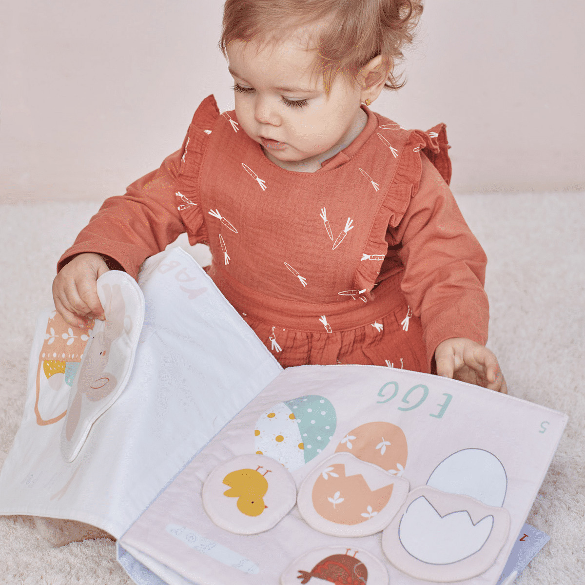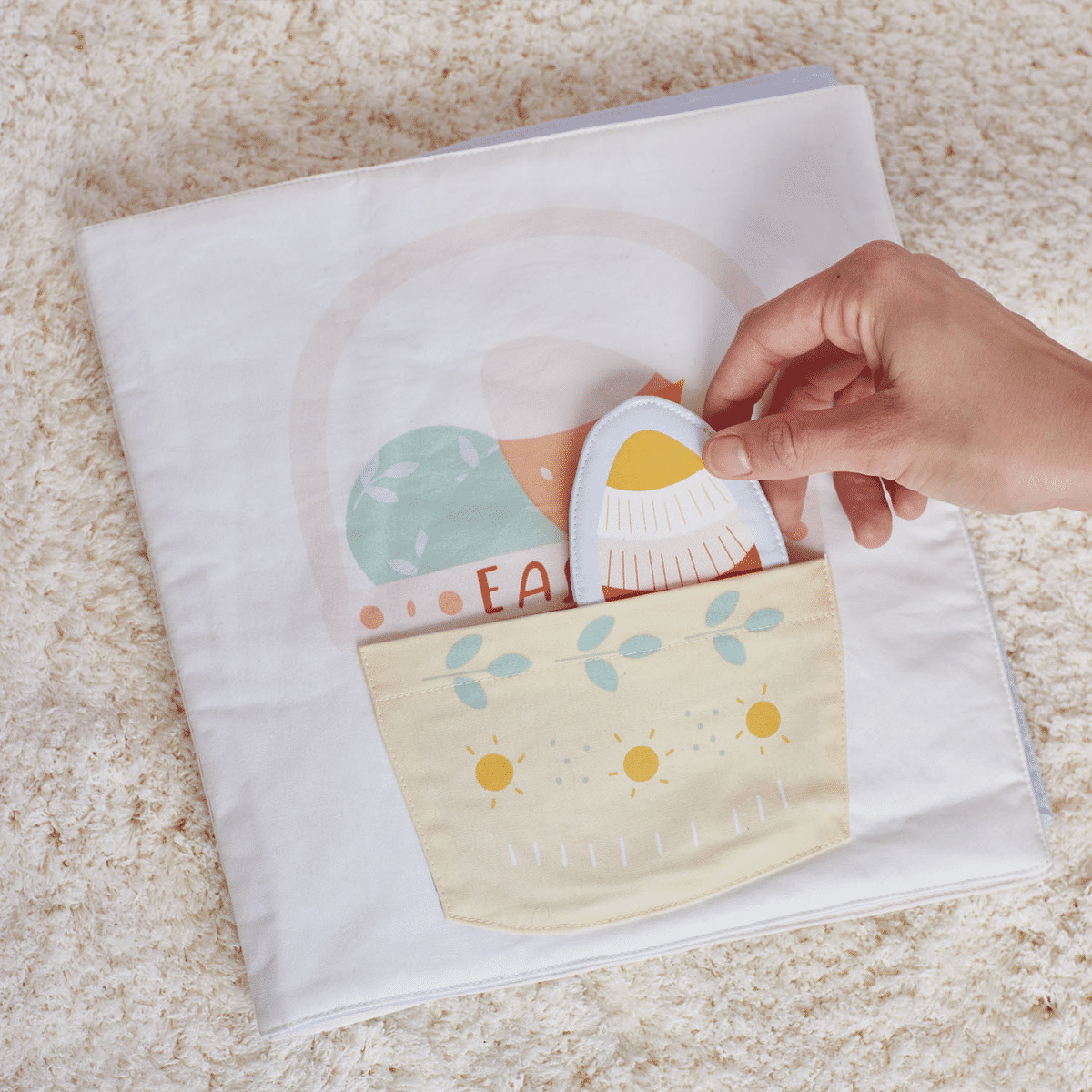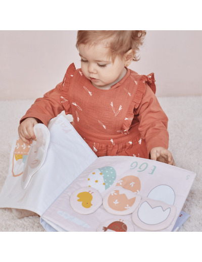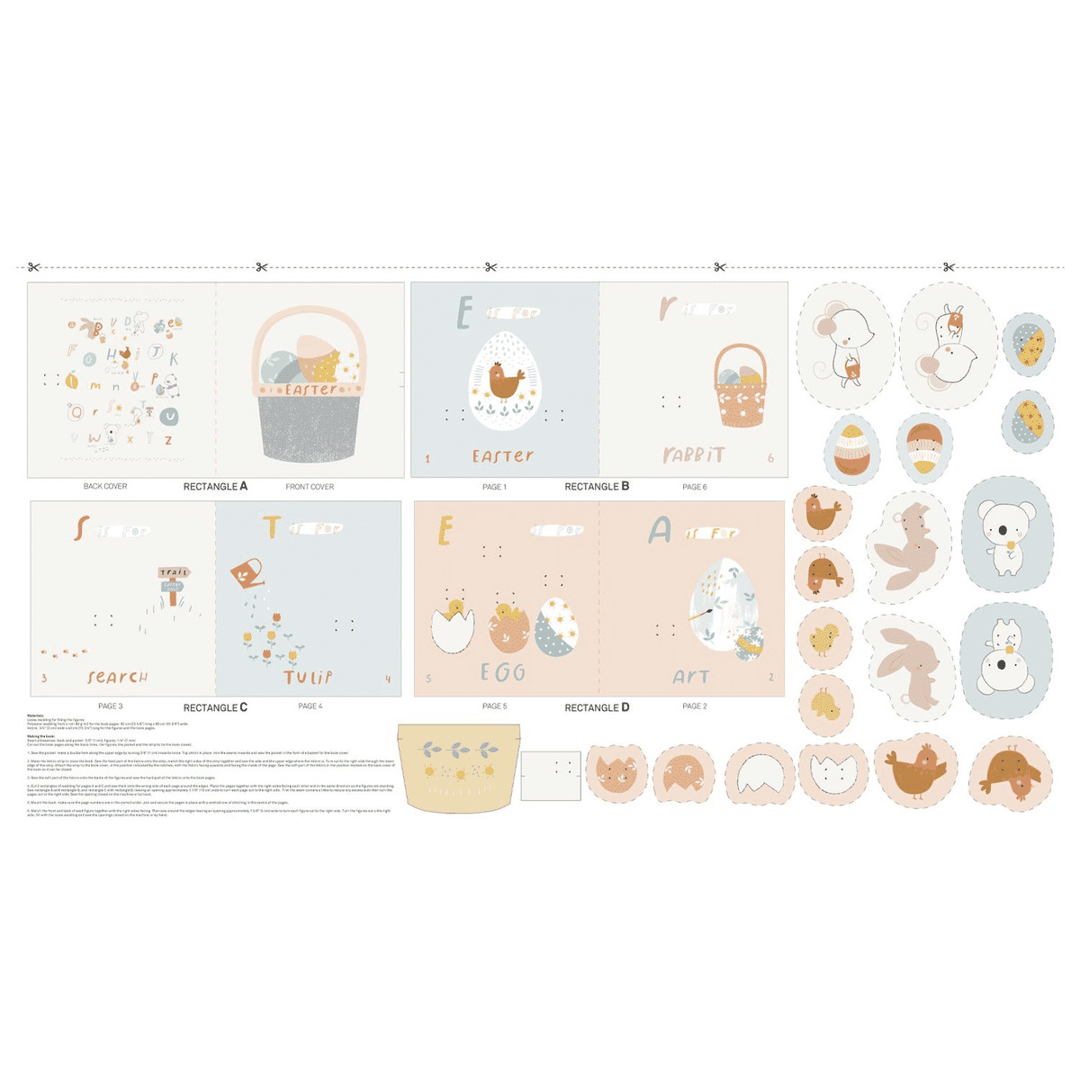 Réalisez ce livre de Pâques grâce à ce panneau en 100 % coton. Œufs, poulets et lapins de Pâques sont parmi les personnages de ce livre interactif.