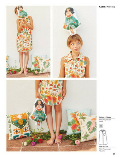 Coupon Tissu poplin Polynesian panel Katia fabrics, impression de motifs polynésien.
