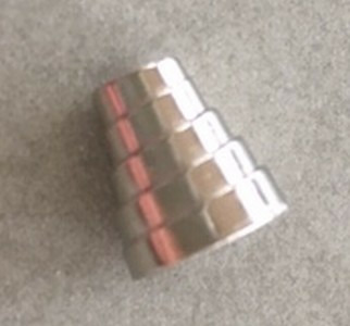 Taille 10 mm de hauteur sur 9 mm de diamètre côté large, 5 mm côté étroit