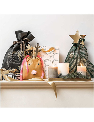 Disponibles en deux formats, ces pochettes cadeaux réutilisables sont fournies avec des accessoires qui permettent de les personnaliser.