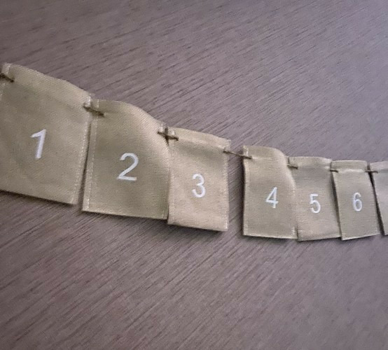 24 sacs naturel numéroté monté en guirlande par une ficelle
