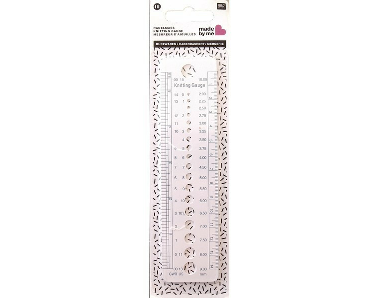 Règle pour connaître le diamètre de toutes vos aiguilles à tricoter, double pointe ou aiguille circulaire.