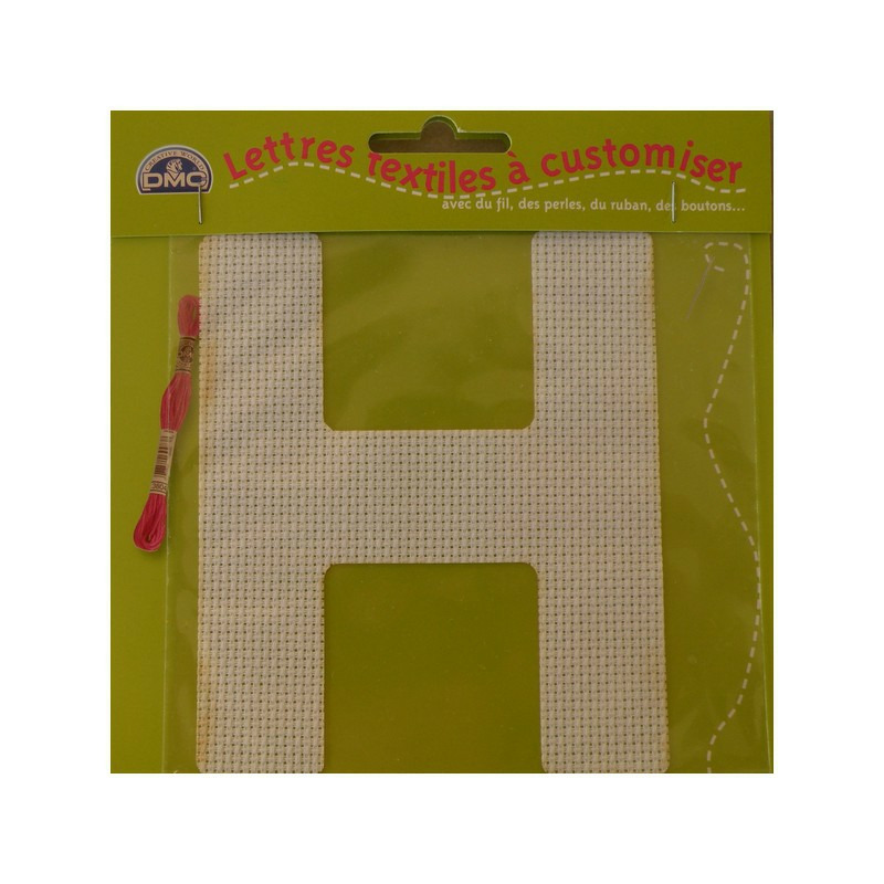 Lettre H textile à customiser déjà prédécoupée dans de la toile aïda 5.5 pts/cm blanche.