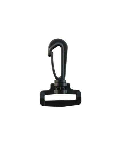 Mousqueton pour sangle de sac en plastique noir.