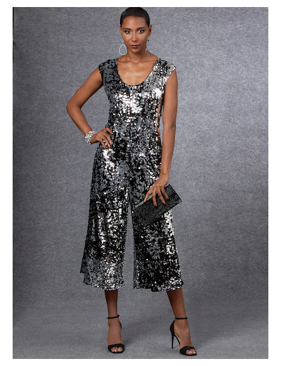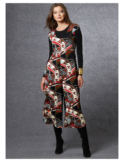 Combinaison A-B à taille élastique, corsage ample et pantalon évasé avec ou sans poche dans les coutures latérales . A: Corsage doublé . B: Entièrement doublé .