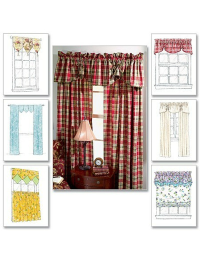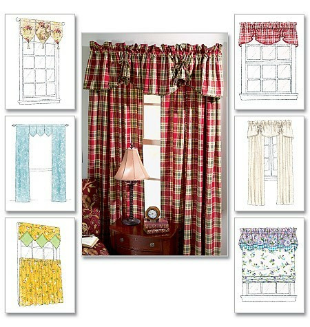 La pochette comprend les instructions et patrons pour faire six habillages de fenêtre différents.