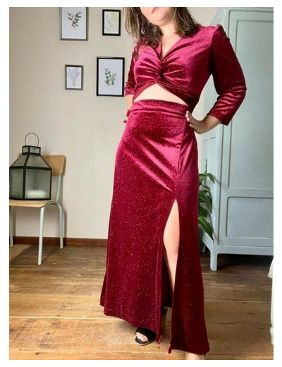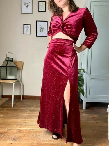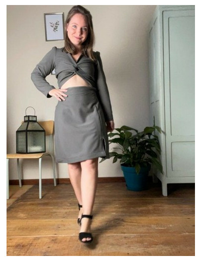 Robe trompe l'oeil. Haut torsade, jupe relié par une fermeture dans le dos