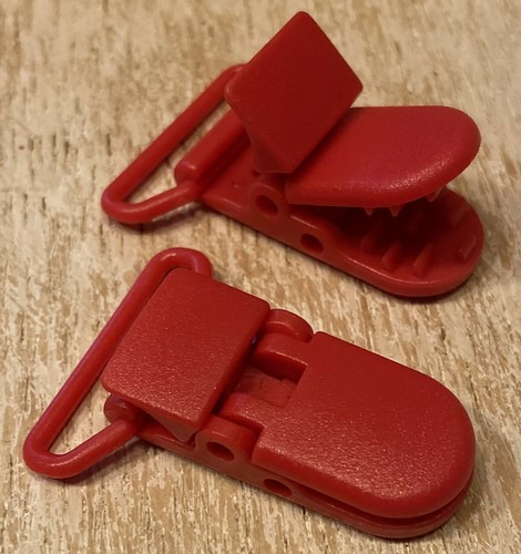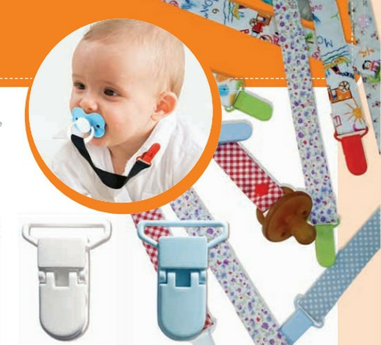 Pince bretelle plastique qui peut être utilisé comme attaches-tétine.