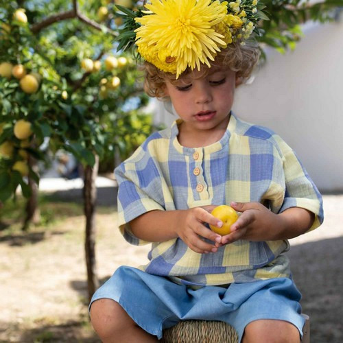 Coloris : Bleu et jaune, unis jaune sur l'envers