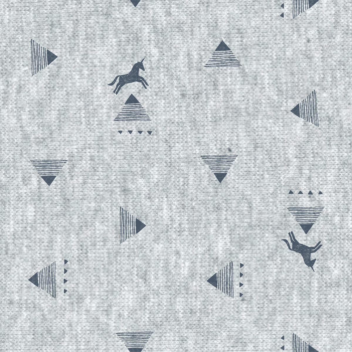 Tissu jersey en coton licorne marine sur fond gris
