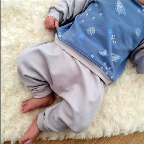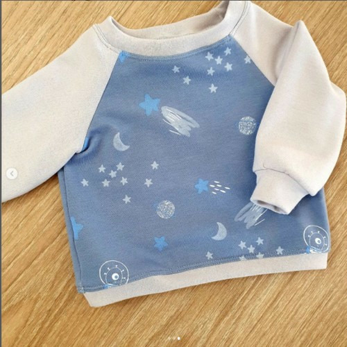Molleton d'hiver gratté sur l'envers, doux et chaud. Imprimé de planètes, lunes et extraterrestres sur fond bleu.