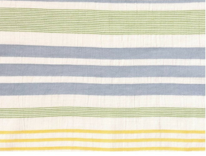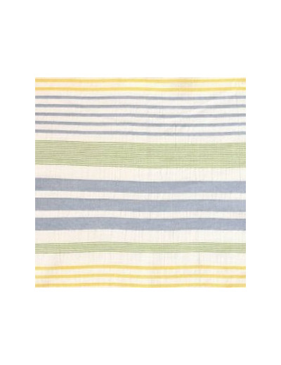 Tissu mélange de coton et viscose. Au léger effet froissé qui lui donne un aspect naturel grâce au fil effet microflamé dans la trame, fil dans des tonalités de vert, bleu et jaune. Idéal pour tout type de vêtements et accessoires : châles, paréos, robes, chemises, pantalons.