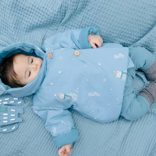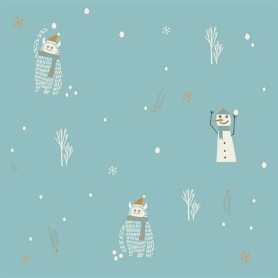 Tissu popeline de coton Yéti et Snowman - Katia Fabrics. Impression Yéti et bonhommes de neige sur fond bleu. Idéal pour la confection de vêtements et aux accessoires pour enfants.