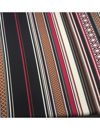 Tissu rayé rouge, ivoire, rose... sur fond noir