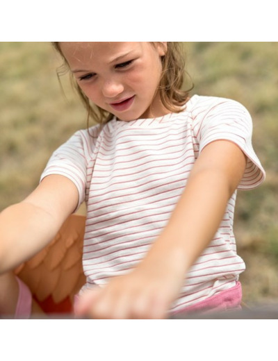 Tissu jersey coton pour l'été, très léger et effet "slub" dans la trame du fil qui a plusieurs épaisseurs. Des rayures horizontales de couleur bordeaux sur fond écru. Dans une largeur de 180 cm, ce tissu permet de confectionner tout type de vêtements comme des robes, tee-shirt et pantalons avec moins de mètrage.