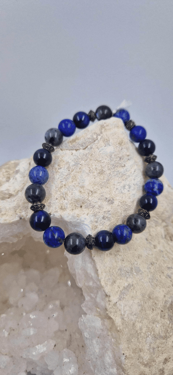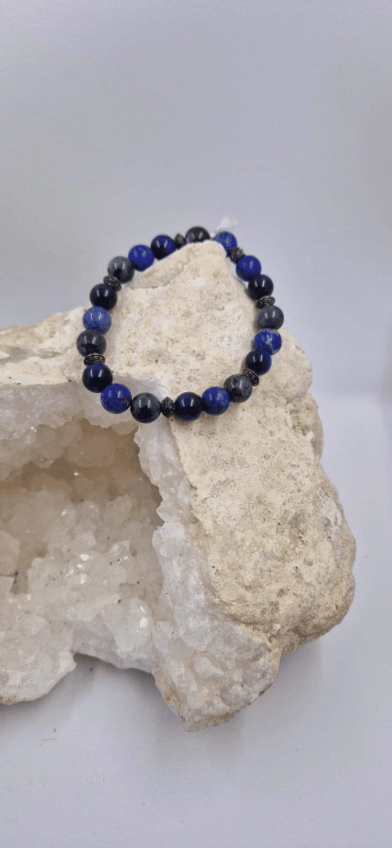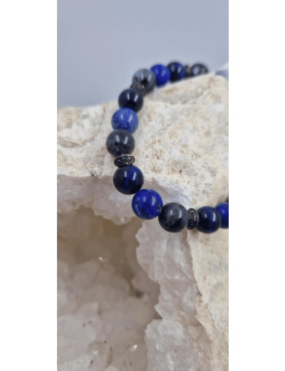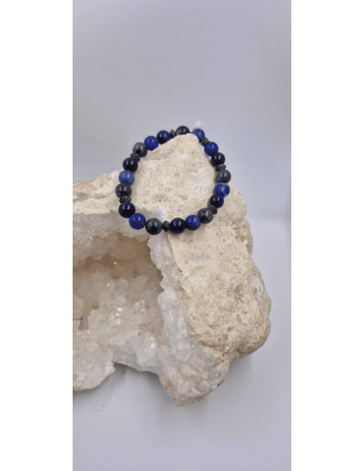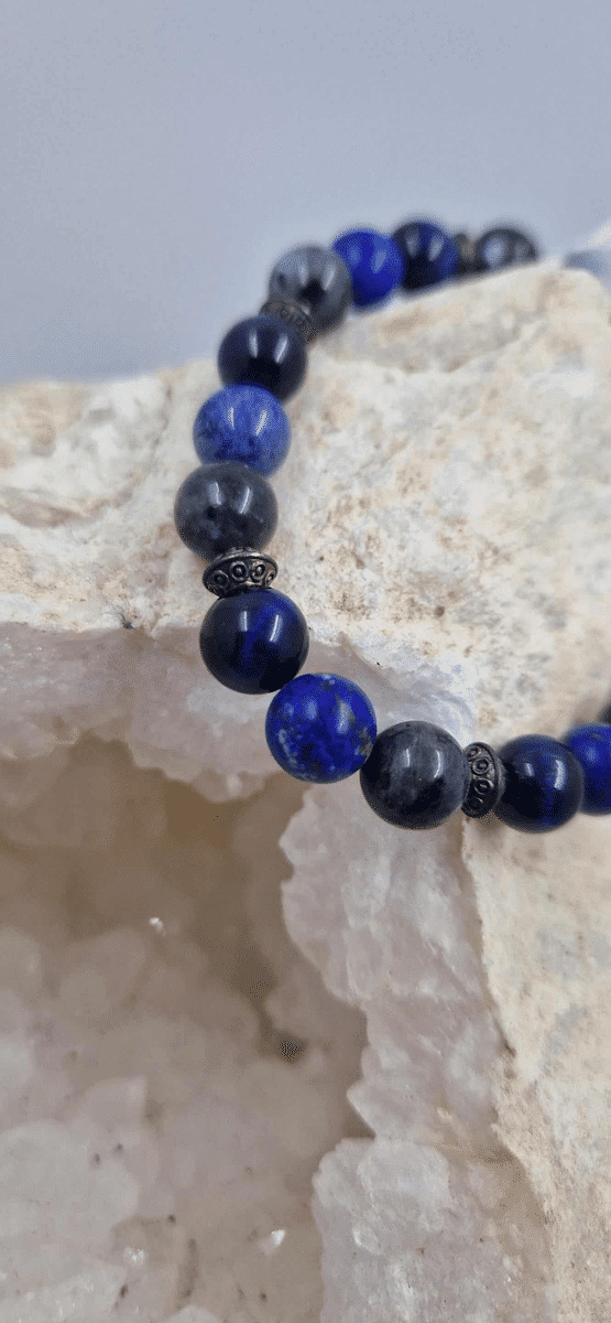 Bracelet lapis lazuli larvikite oeil de tigre bleu