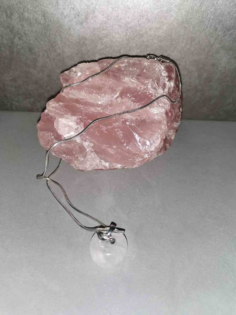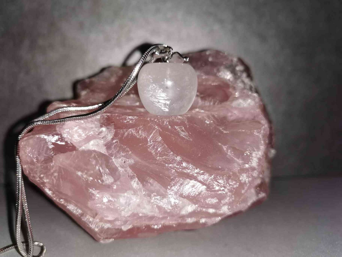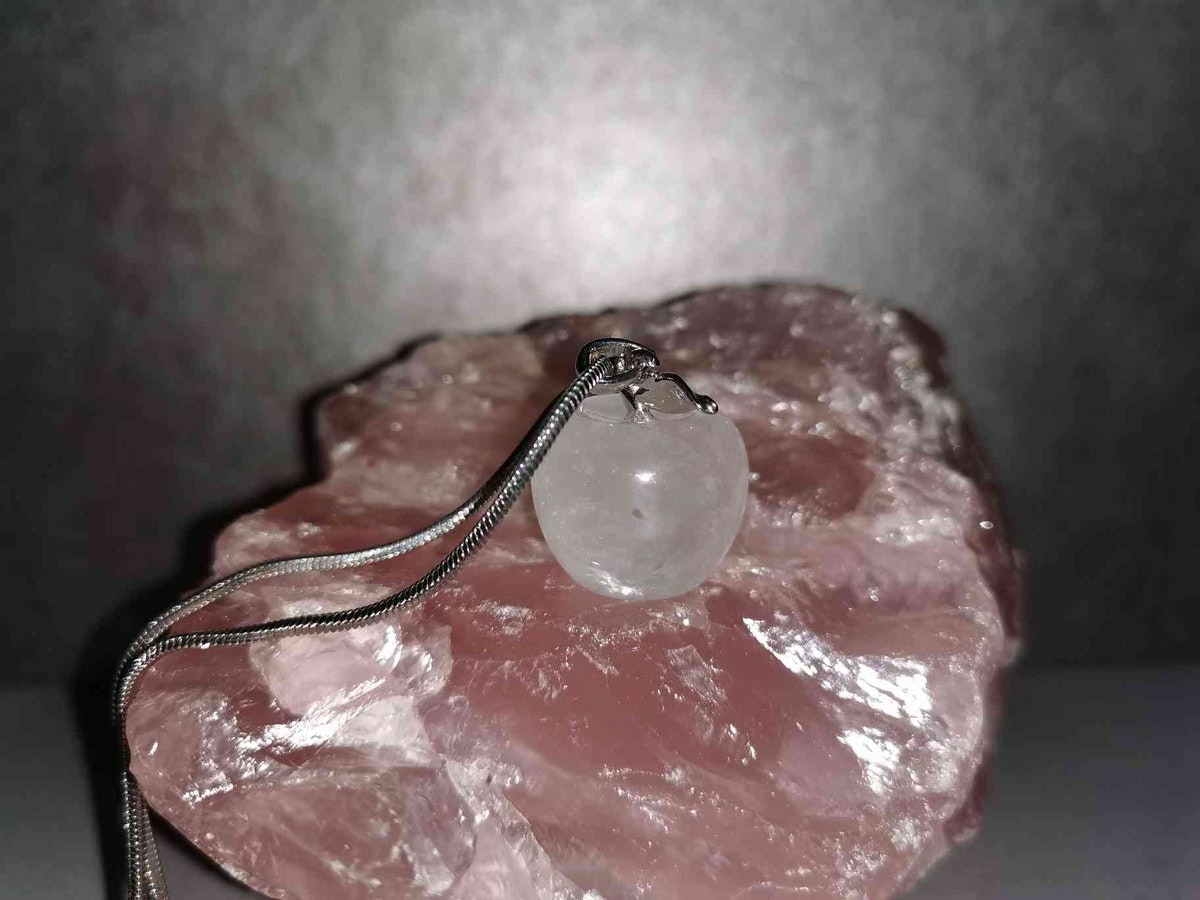 Collier avec chaine en metal argenté et pomme en cristal de roche