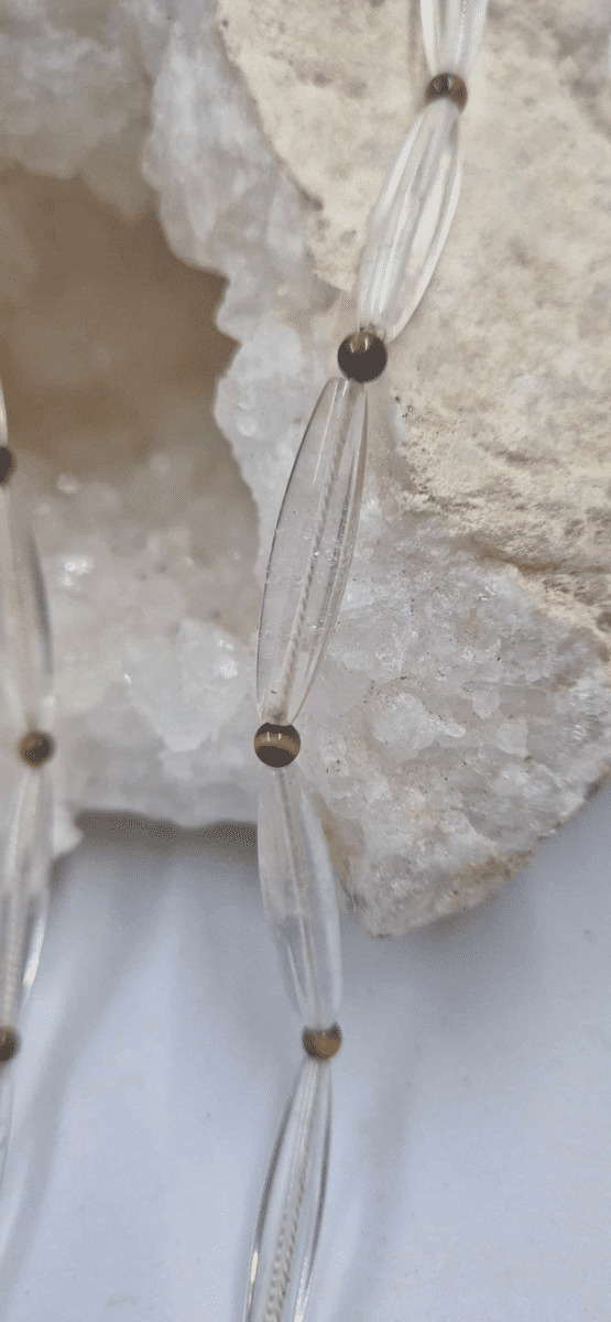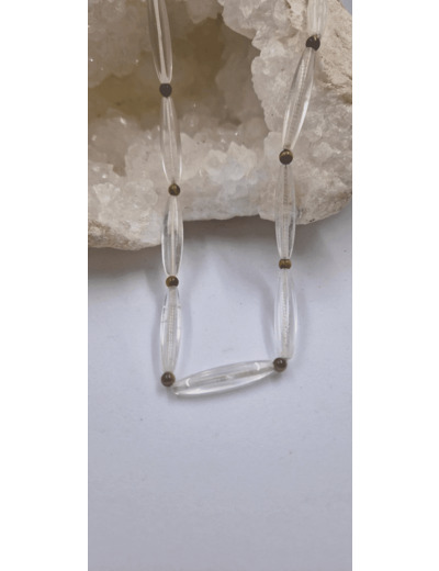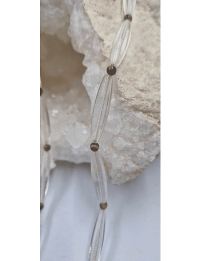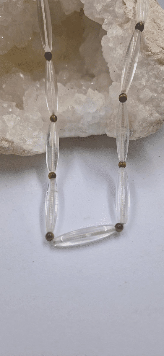 Collier quartz baguette oeil de tigre fermoir argent 925 28g