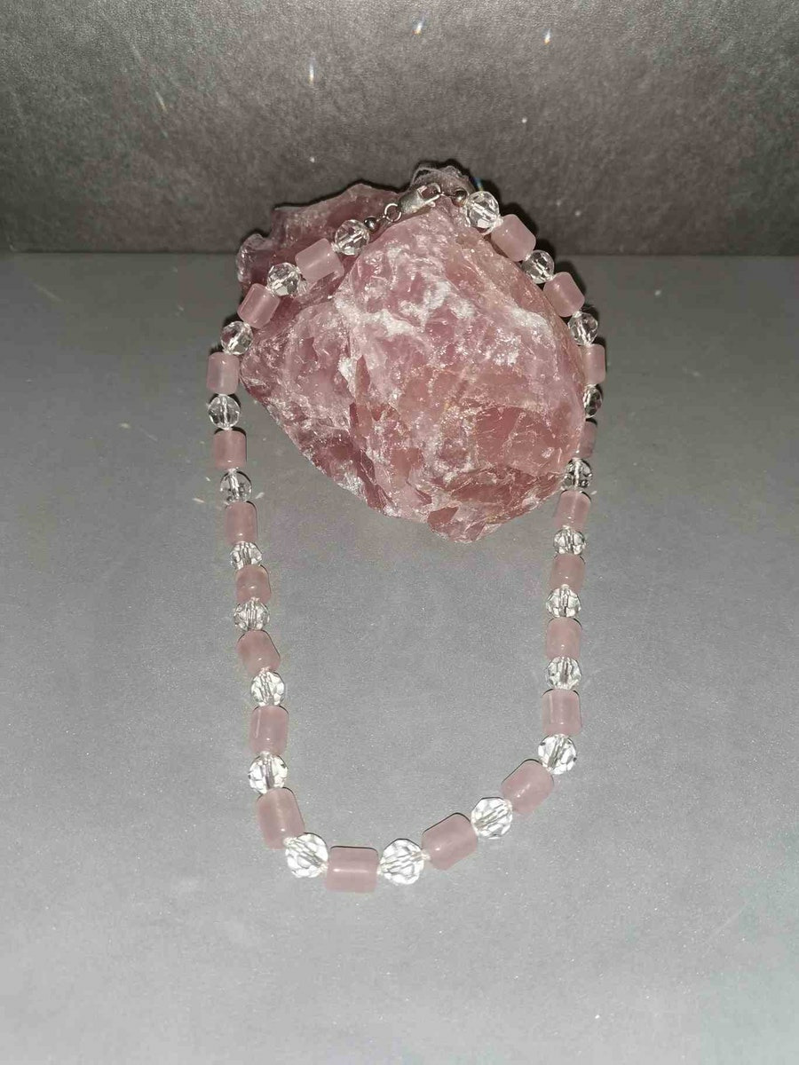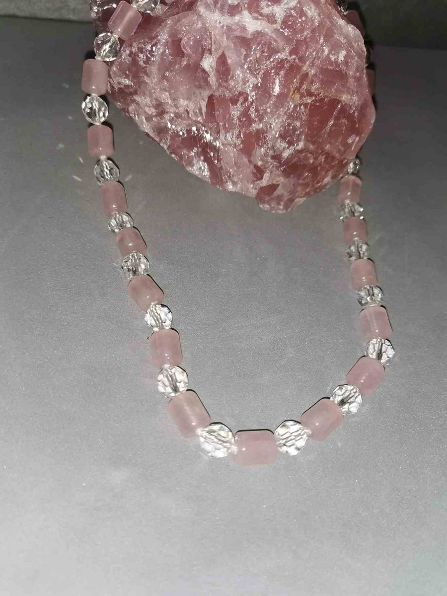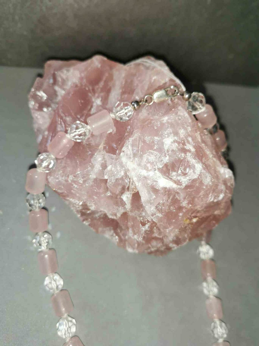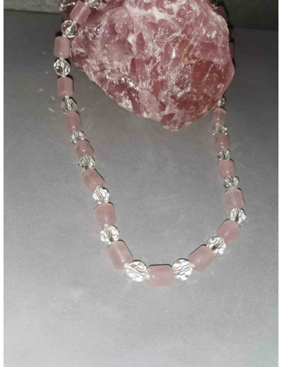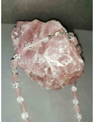 Collier quartz rose et cristal 40cm environ
