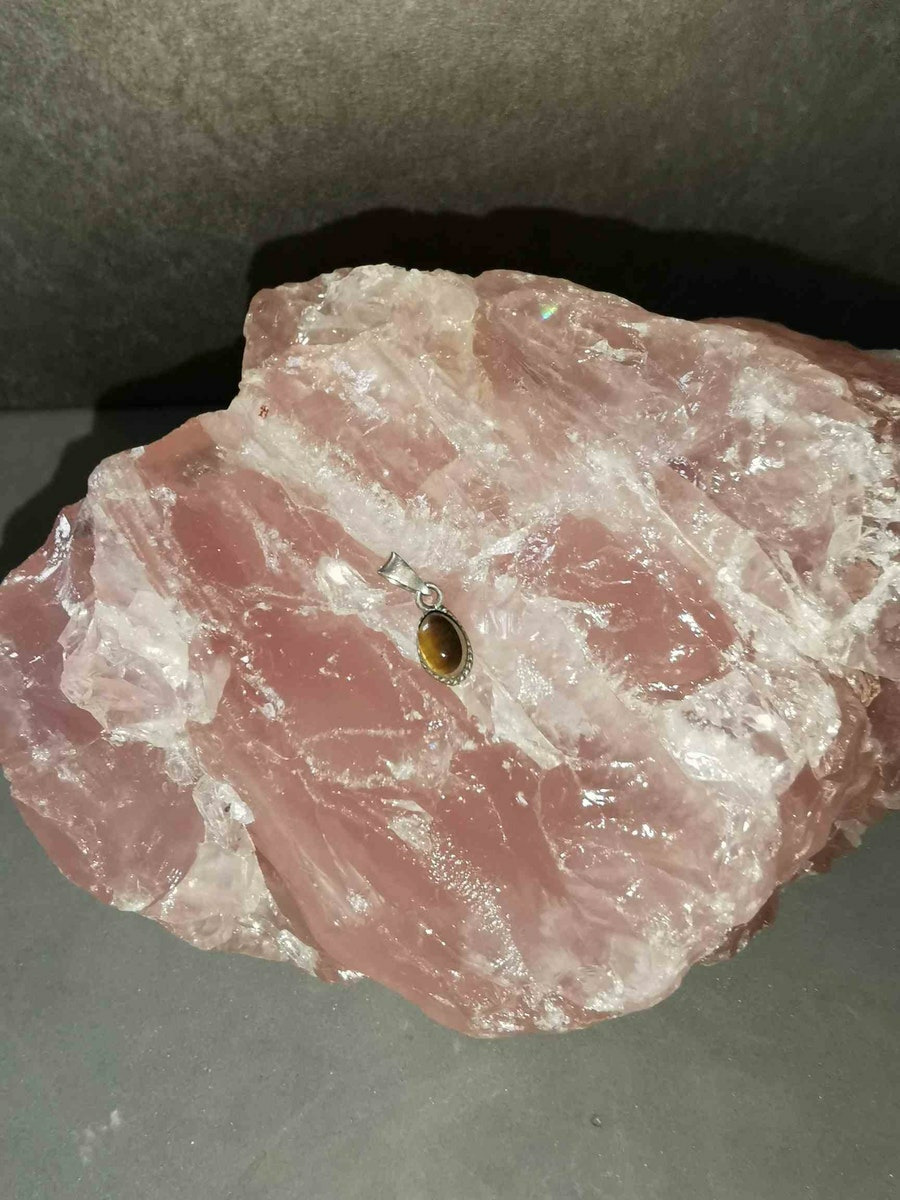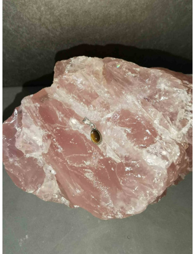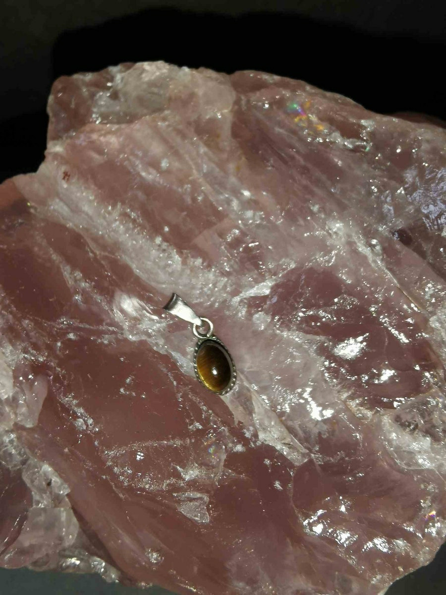 Mini pendentif oeil de tigre cabochon sur argent 925/000 - fabrication artisanale