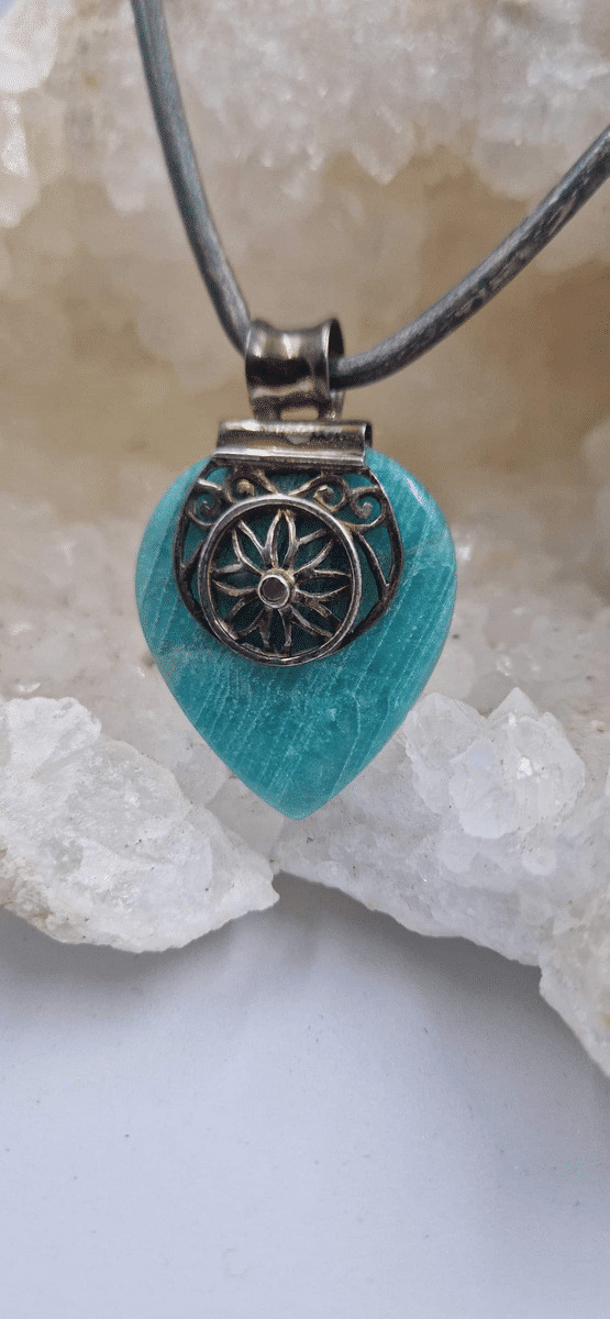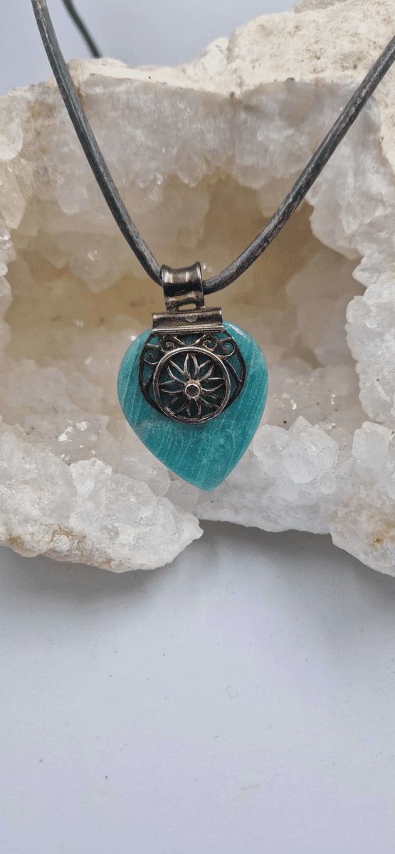 Pendentif amazonite et rubis argent 925 17g