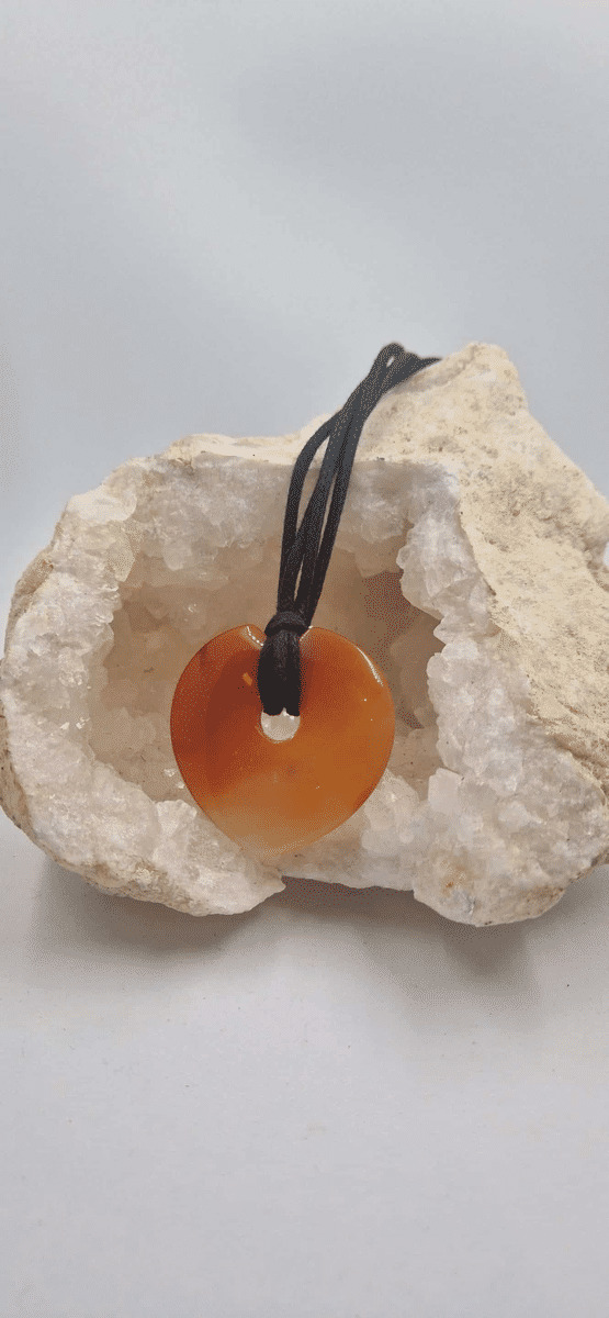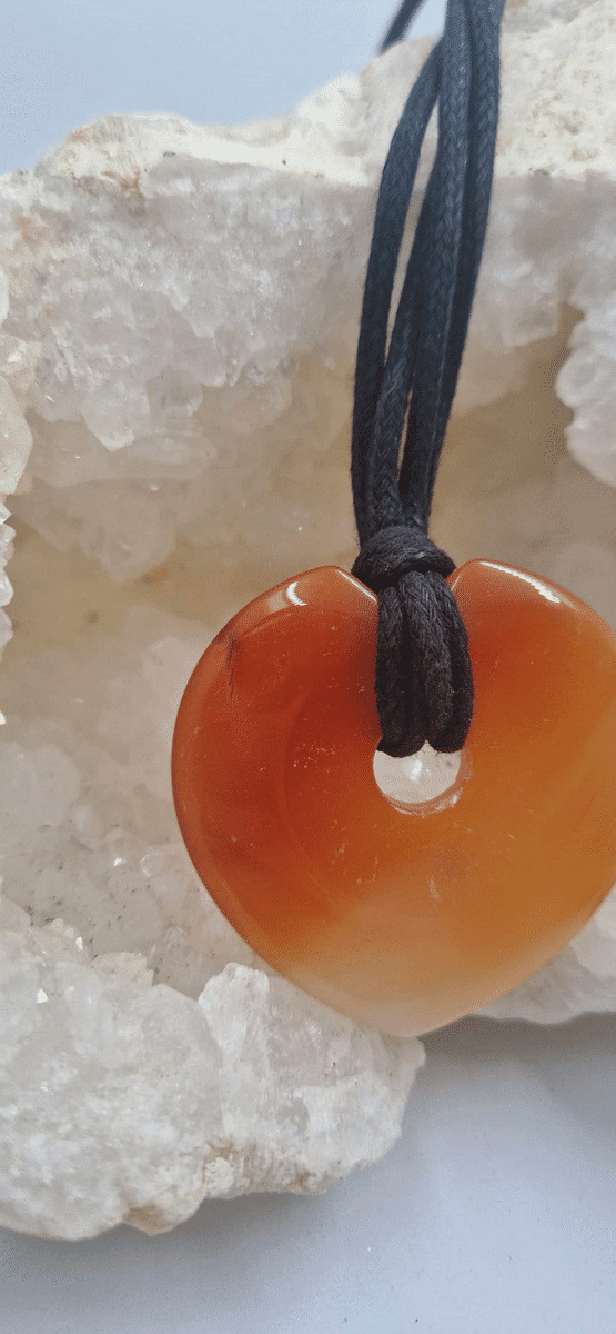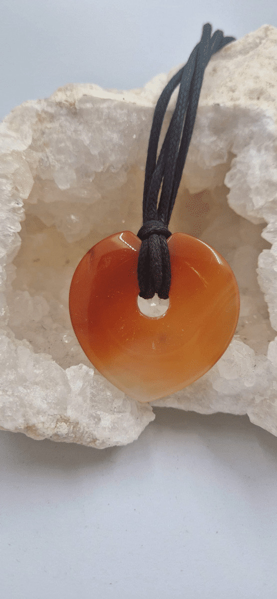 Pendentif cornaline en forme de coeur avec cordon 34g