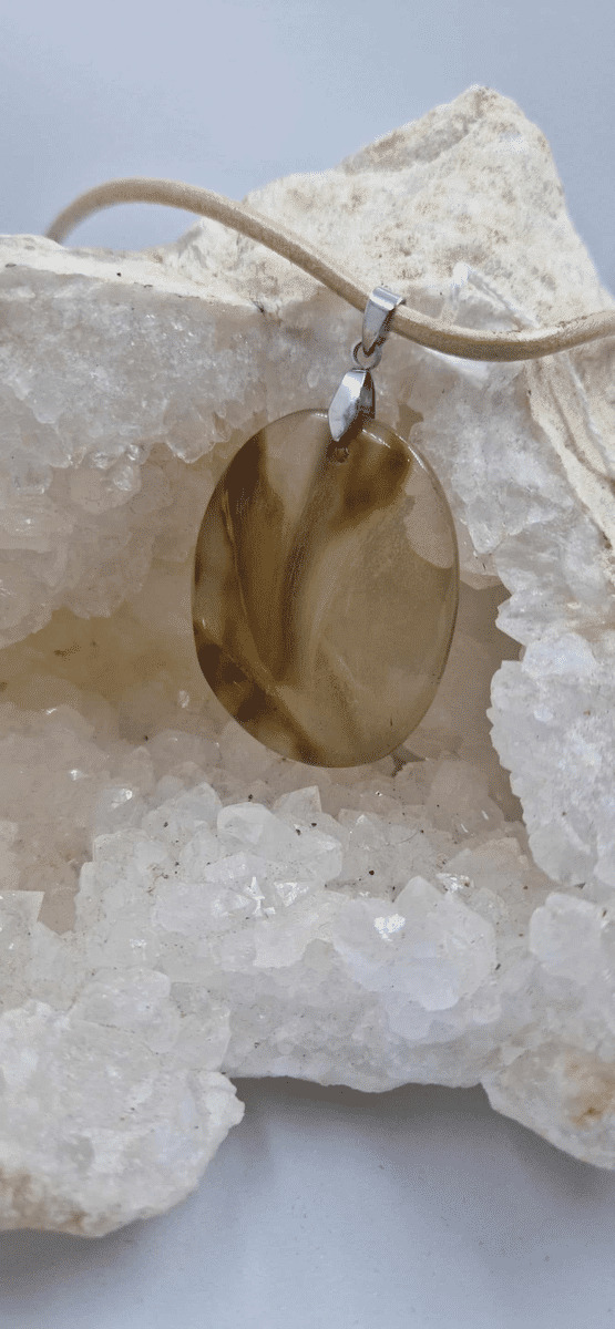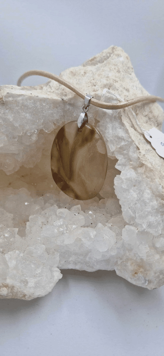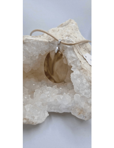 Pendentif quartz fantôme + cordon en cuir 20g