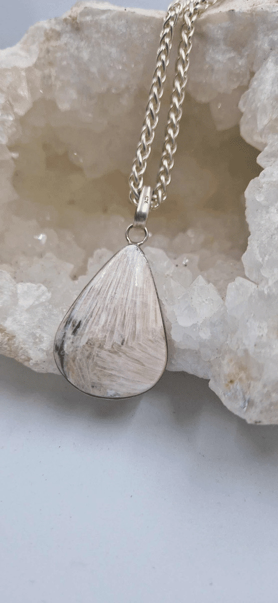 Pendentif scolecite et chaine argent 925 34g