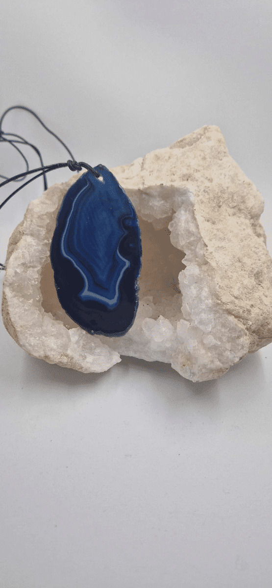 Pendentif tranche agate avec cordon 48g