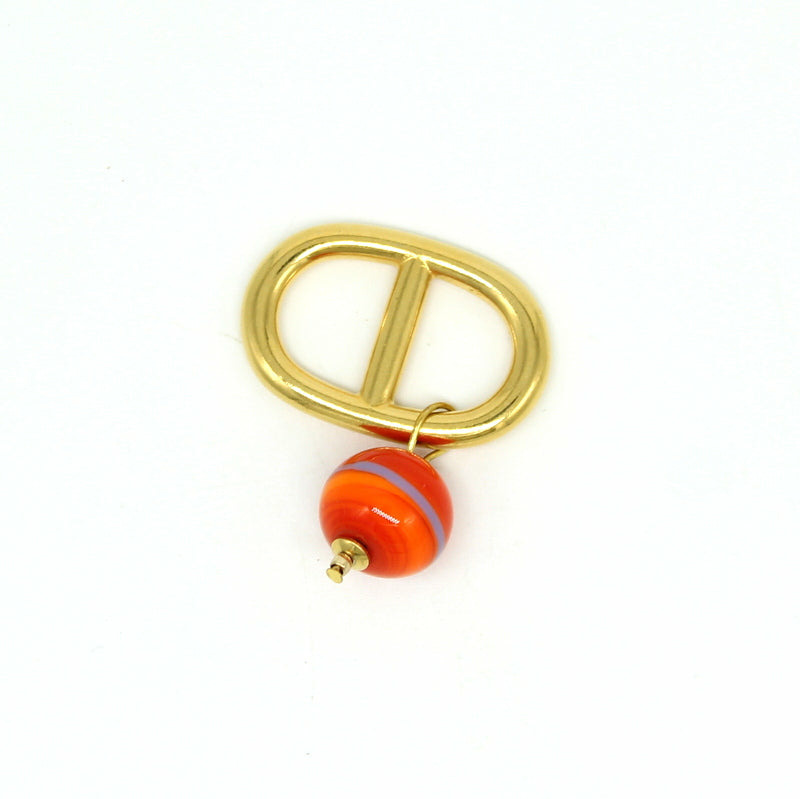 Accroche-foulard maille marine, avec perle en verre de Murano couleur vert melon
