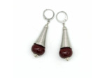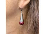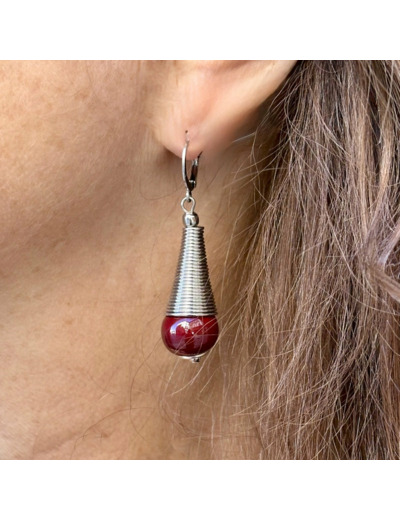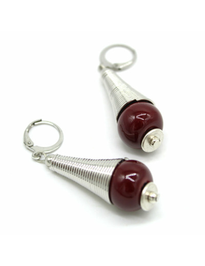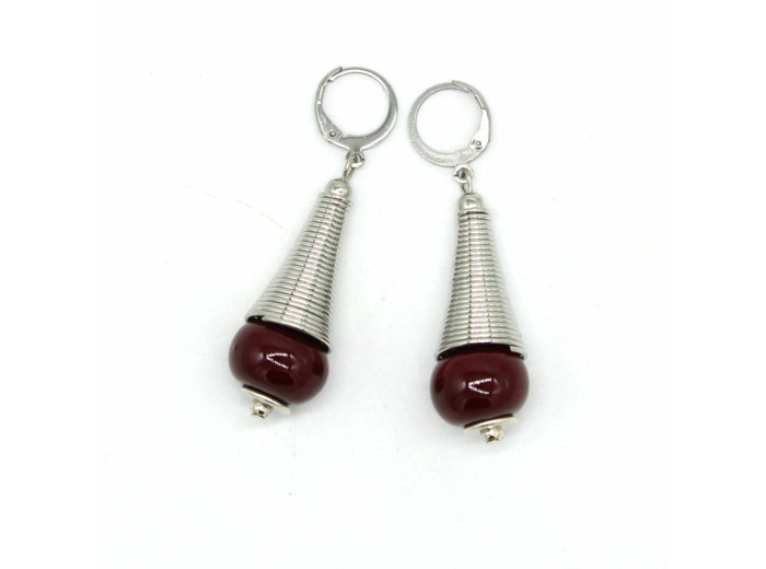 Boucles d'oreilles avec un magnifique habillage argenté d'une céramique bordeaux, dormeuse en acier.