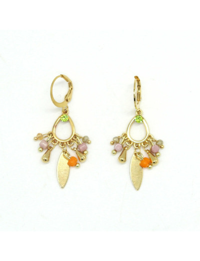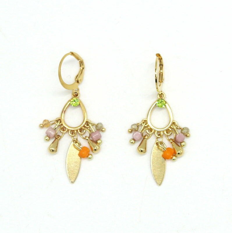Boucles d'oreilles fleur en laiton, perles en verre, cristal Swarovski.