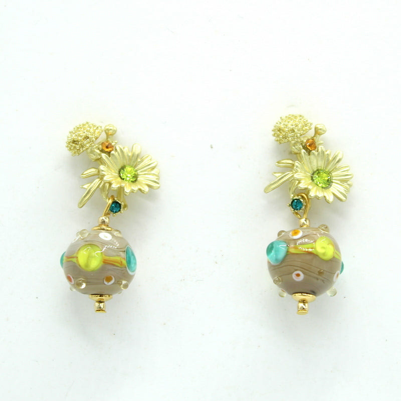 Boucles d'oreilles doré, perles en verre de Murano couleur mosha, vert, ivoire, terracota, cristal Swarovski.