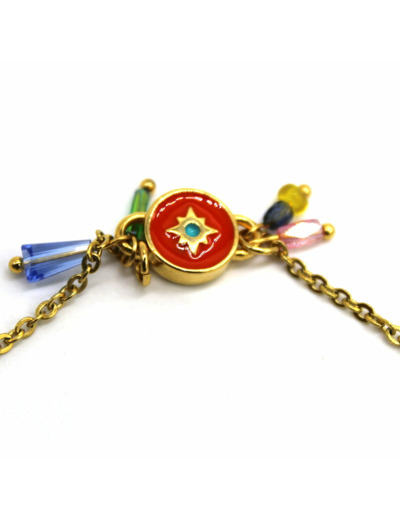 Le bracelet Zeline avec un intercalaire en émail orange, accompagné de petites perles vertes, bleues et roses, une touche lumineuse à votre tenue.