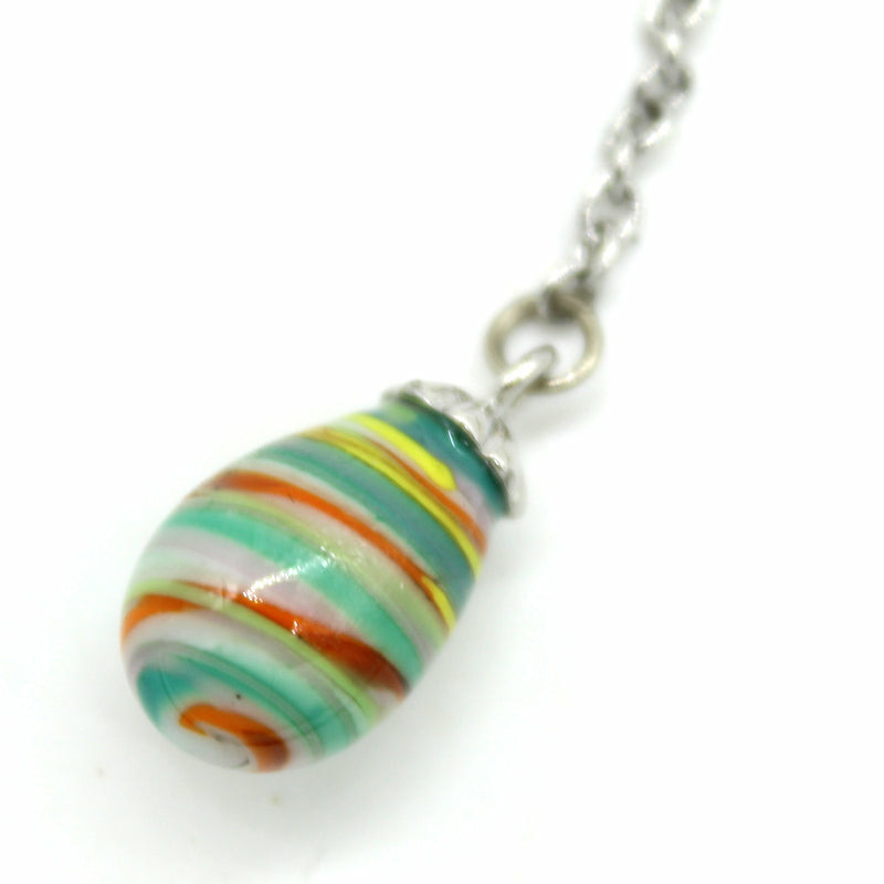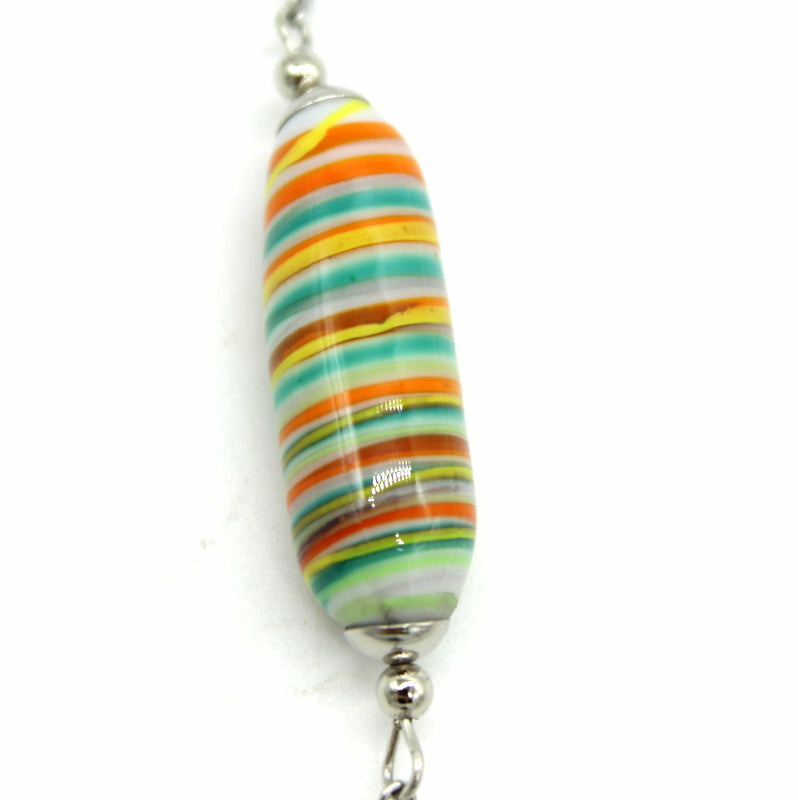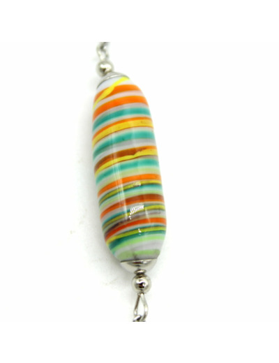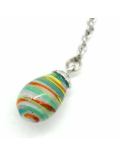 Collier avec chaine en acier et perles en verre de Murano gris perle décor multicolore