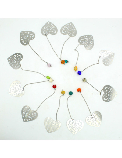 Le cœur est inséré dans le livre pour marquer la page, la chaine fine avec la perle se positionne à l'extérieur