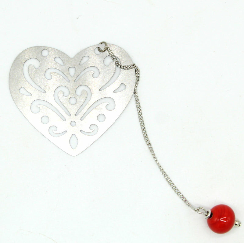 Le cœur est inséré dans le livre pour marquer la page, la chaine fine avec la perle se positionne à l'extérieur