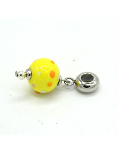 Perles en verre de Murano jaune pois, montée sur pendentif pour bracelet Mix Poé et Soeli, perle interchangeable grâce à l'embout dévissable du bracelet.