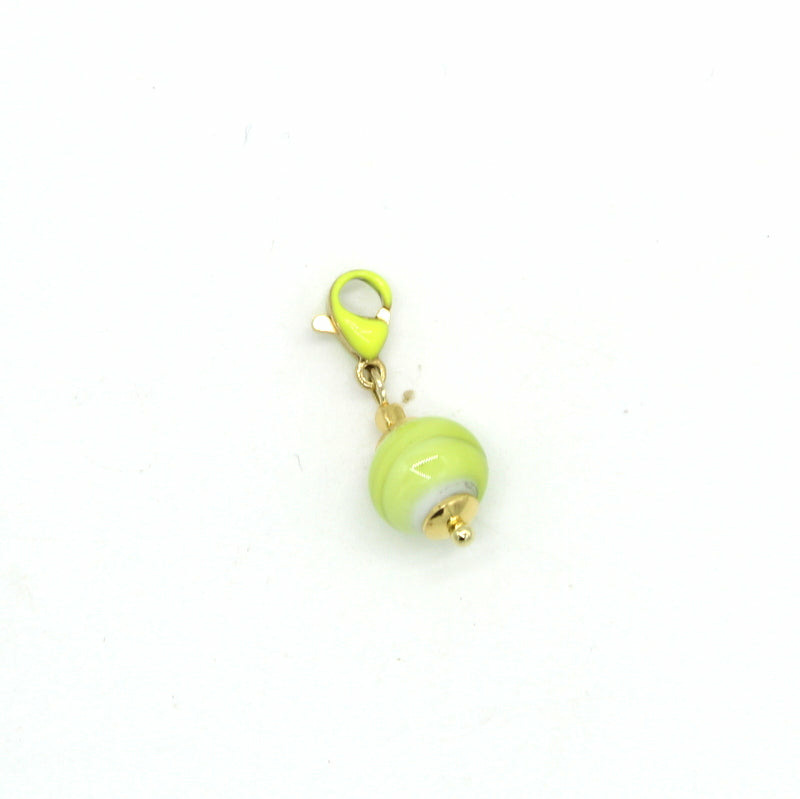 Perle en verre Murano blanc vert transparent, à accrocher à votre bracelet grâce au mousqueton en acier doré émaillé jaune, composez votre combinaison au gré de vos envies ou de vos tenues.