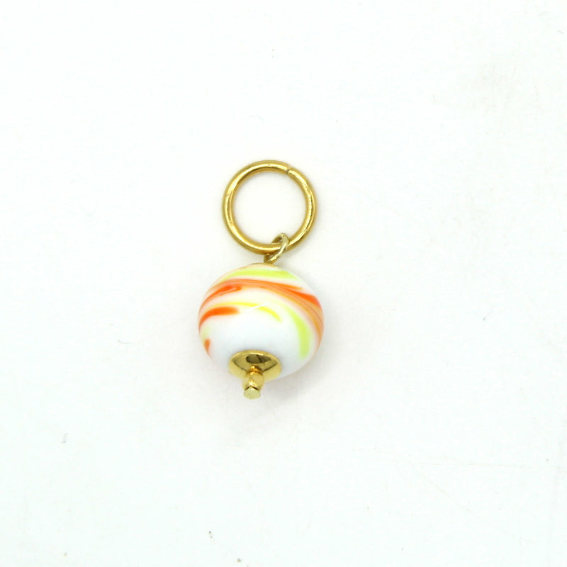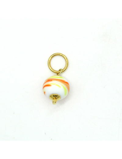 Perles filée à la flamme en verre de Murano blanche liseré, monté sur anneau doré, s'adapte au jonc articulé.
