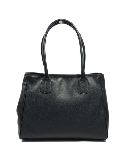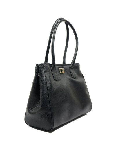Forme shopping en cuir de vachette pleine fleur grainé, fermeture par bouton, anses fixes. Un compartiment principal avec une poche zippée intérieure. Boutons sur les côtés pour ajuster la taille du sac. Sans poche extérieure ni bandoulière amovible.