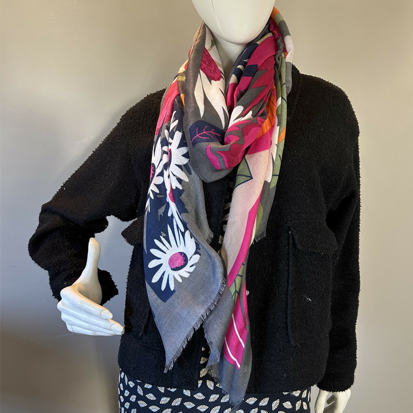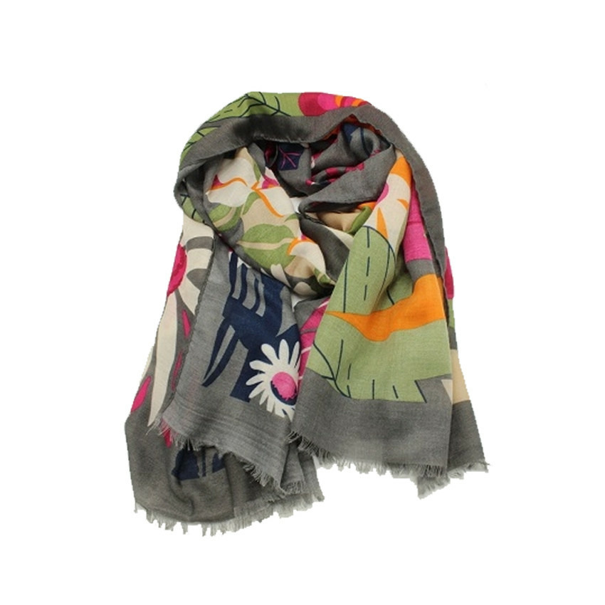 Atoll Palme Explosion De Fleurs Foulard Gris Foncé