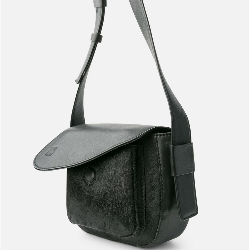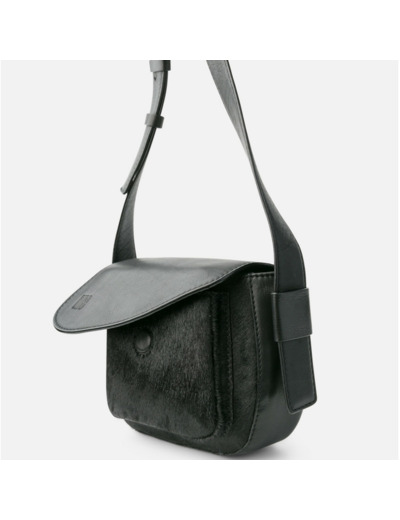 • Sac porté travers en cuir de vachette et daim