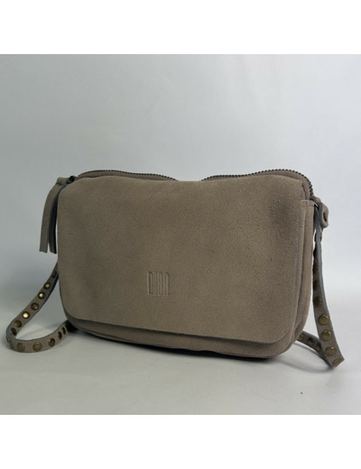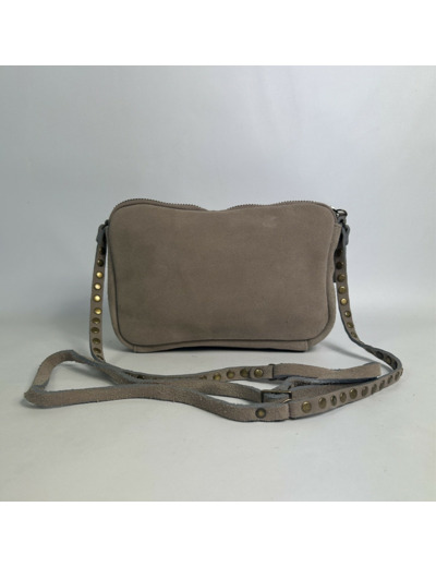Dimensions : 22 x 14 x 6 cm. Sac en cuir avec fermeture à rabat, une poche plaquée sous rabat, un compartiment zippé avec une poche plaquée. Bandoulière réglable et amovible, détails cloutés sur la bandoulière. Se porte sur l’épaule ou en travers.