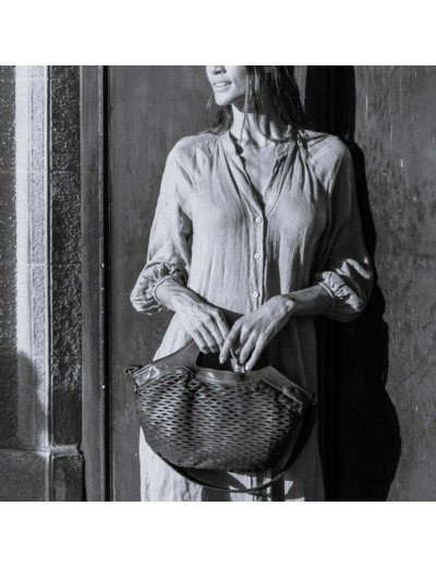 Confectionné en cuir de vachette lavé et perforé, ce sac se distingue par sa texture unique et sa robustesse naturelle. Sa doublure en coton garantit une finition soignée tandis que la fermeture zippée sécurise vos effets personnels. Polyvalent, il se porte à la main, en bandoulière grâce à sa sangle réglable et amovible, ou en travers pour un look décontracté.