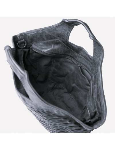 Dimensions : 47 x 27 x 10 cm. Matière : cuir de vachette lavé et perforé. Doublure en coton. Fermeture zippée. Bandoulière réglable et amovible. Compartiment intérieur avec poche.