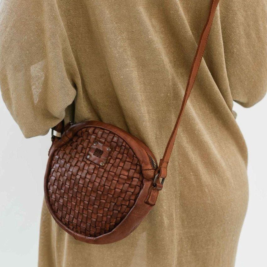 Dimensions précises, cuir lavé tressé de qualité, doublure naturelle en toile de coton, bandoulière cuir réglable non détachable, un compartiment zippé principal et une poche intérieure zippée complètent ce sac fonctionnel et élégant.